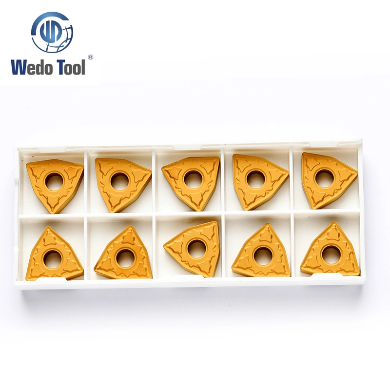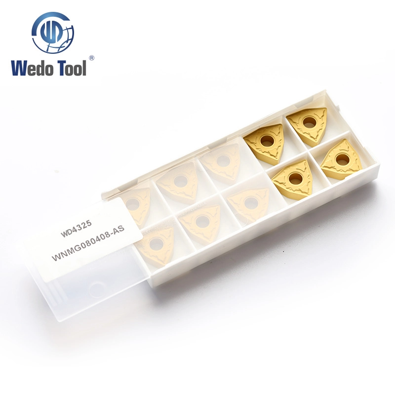 WNMG Turning Inserts with negative (0°) relief angle, have strong edge. The general applications and varying depths of cut dependent on chip breaker type across most materials. WNMG Turning Inserts can deal with multiple operations by combining different chip breakers and grades.it’s a very good economical choice for your production, since they are made symmetrically, so that when the one cutting edge is worn they can rotate to another edge.